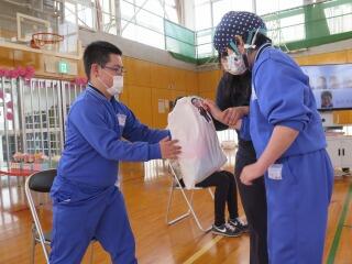 在校生は玄関で卒業生を見送り、別れを惜しみながら、「高等部でも頑張ってね」と伝えていました。