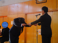 当選した5名の生徒が生徒会役員に任命されました。一年間、全校のために活躍されることを期待しています。