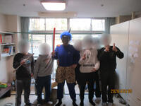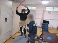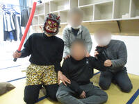 2月の第一週に各棟で豆まき会を行いました。鬼の登場に驚きながらも豆に似せて丸めた新聞紙を使い「鬼は外、福は内」と元気な声でまきました。季節の行事に親しむ時間となりました。