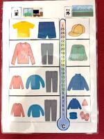 視覚支援具を使って、気温に応じた衣類を自分で選択できるよう指導しています。